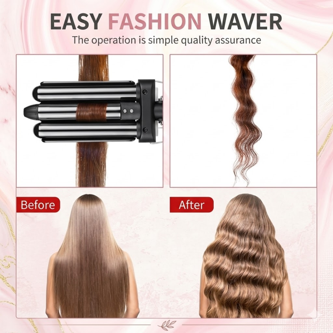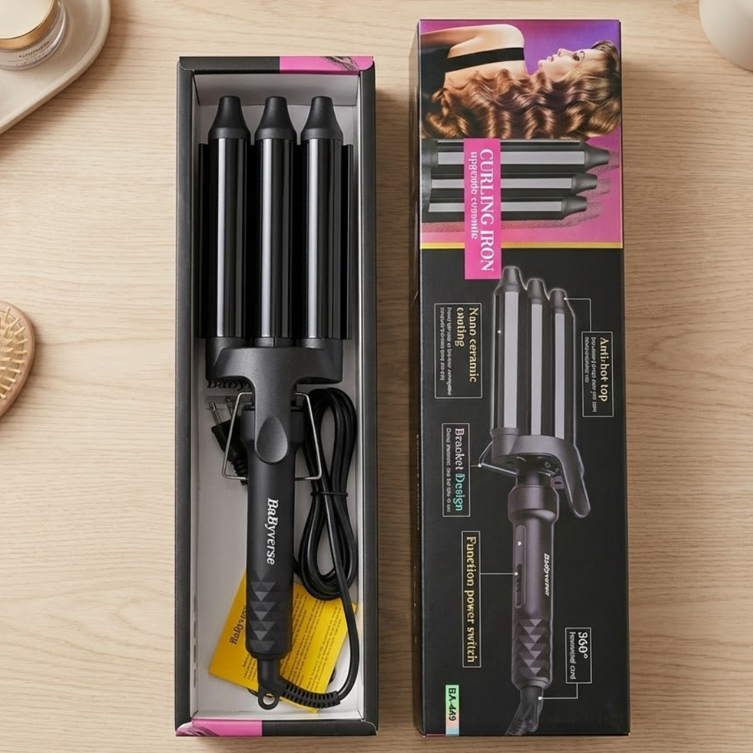 Turn heads with stunning, salon-style waves using the Babyverse Professional Couture Hair Pro 3 Ceramic Wave Styler—your go-to tool for creating soft, beachy “S” curls with ease. Designed for women who love texture, volume, and effortless glam, this 3-barrel curler heats up quickly and works beautifully on long and thick hair.