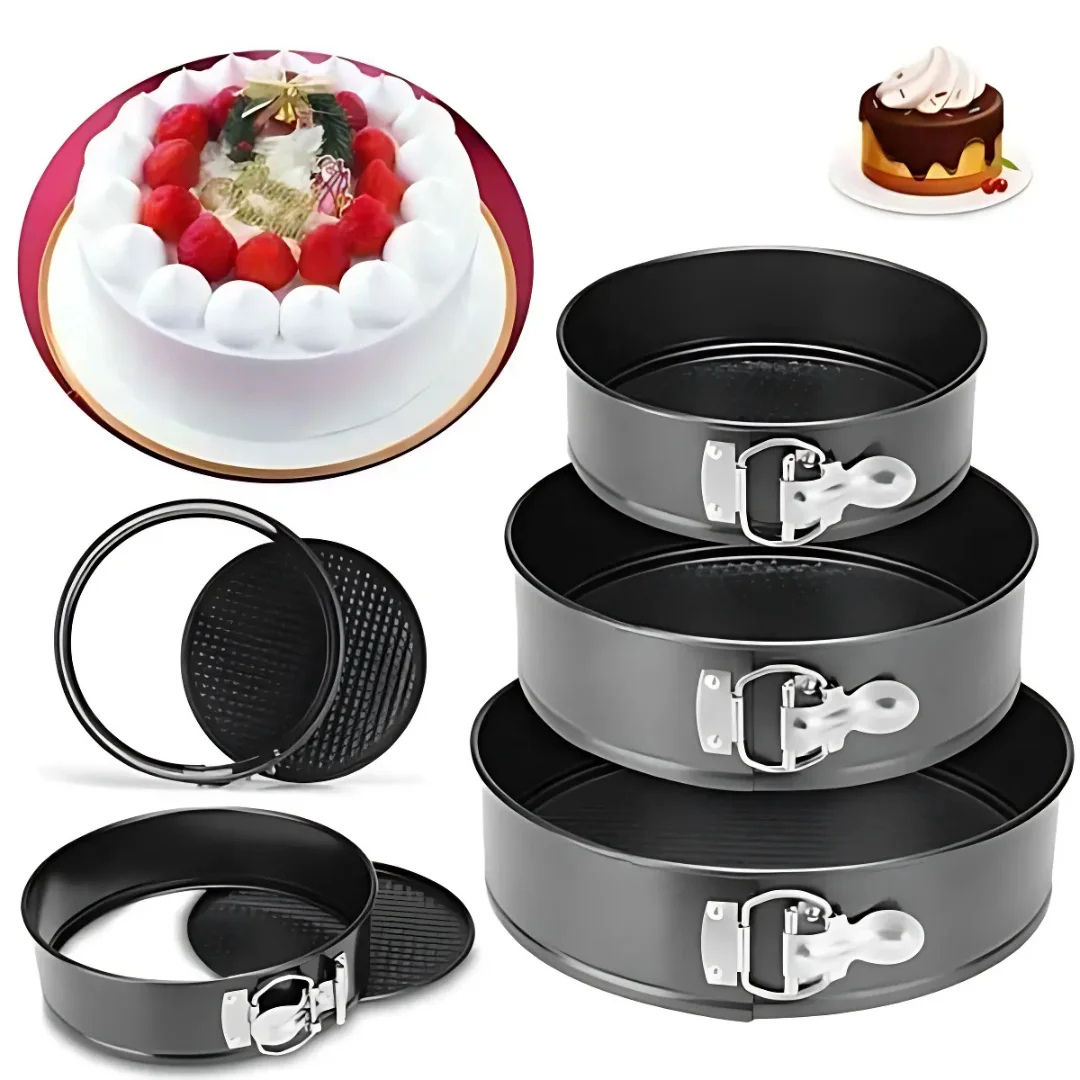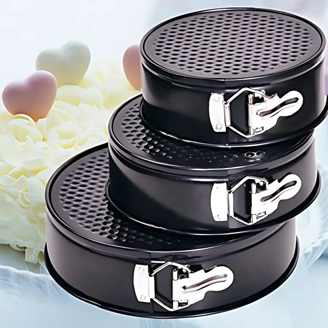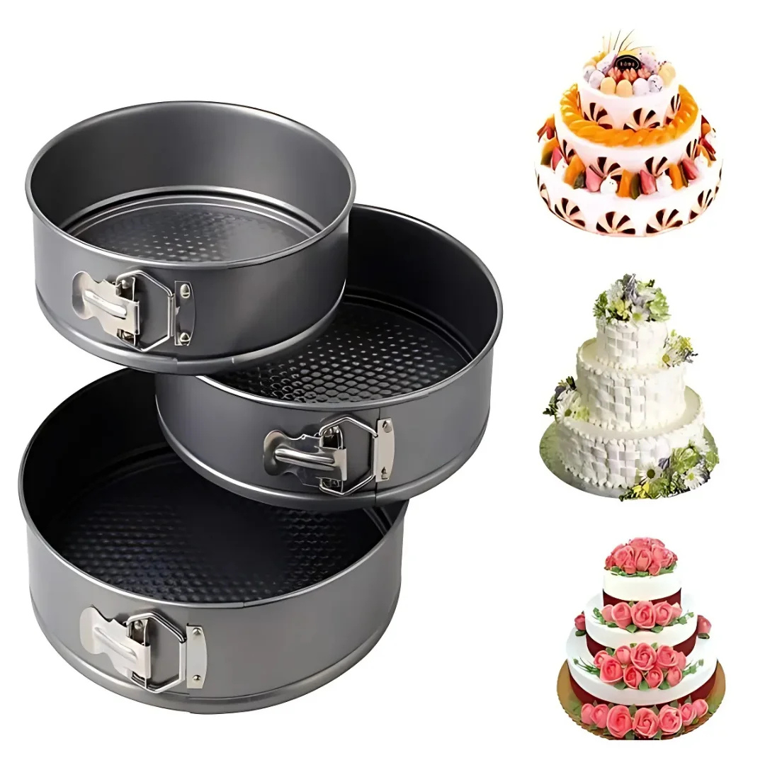Bake your favorite cakes with ease using this 3-piece nonstick round cake mould set πŸŽ‚. Made from durable carbon steel, microwave safe, and featuring removable bases β€” perfect for birthdays, weddings, and more! πŸ’