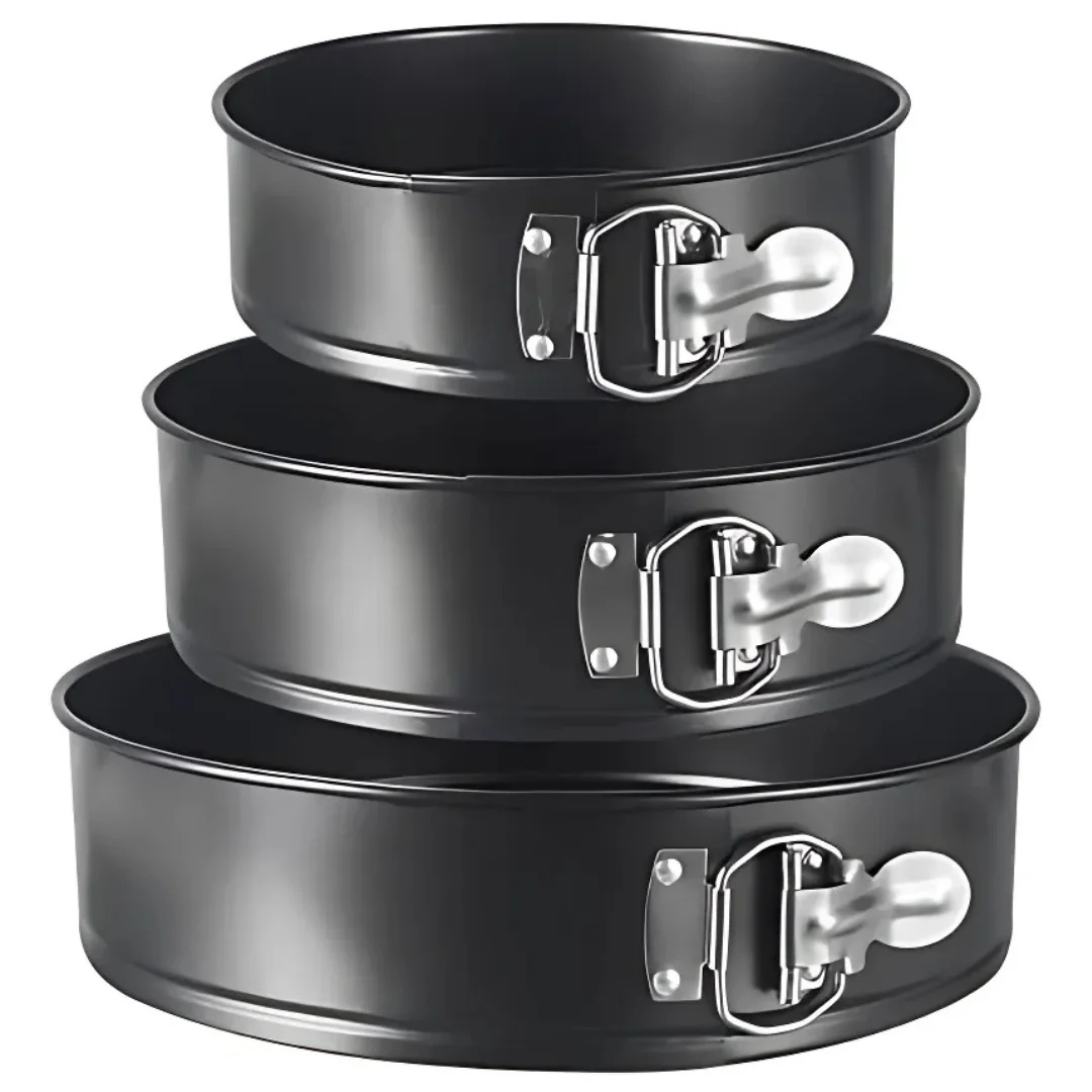 Set of 3 Nonstick Round Cake Mould Pans 🍰 | Carbon Steel Baking Tray Set with Removable Base (18cm, 20cm, 22cm)